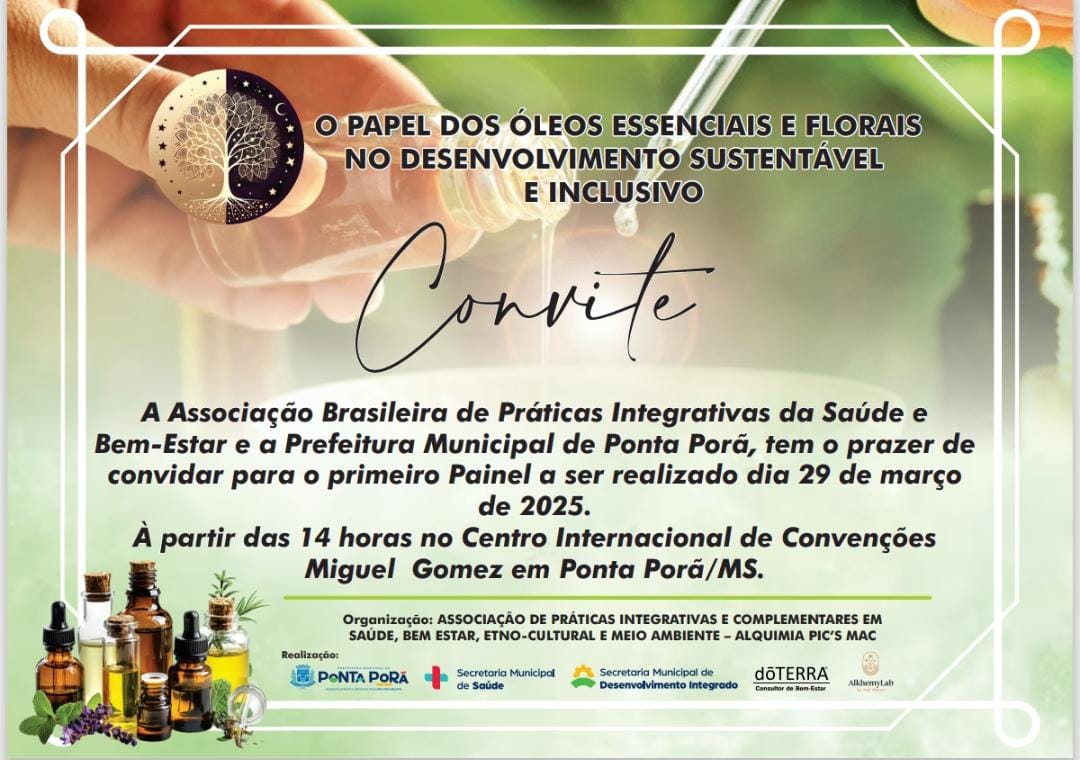 A Associação Brasileira de Praticas Integrativas e Complementares da Saúde e a Prefeitura Municipal de Ponta Porã promovem no próximo